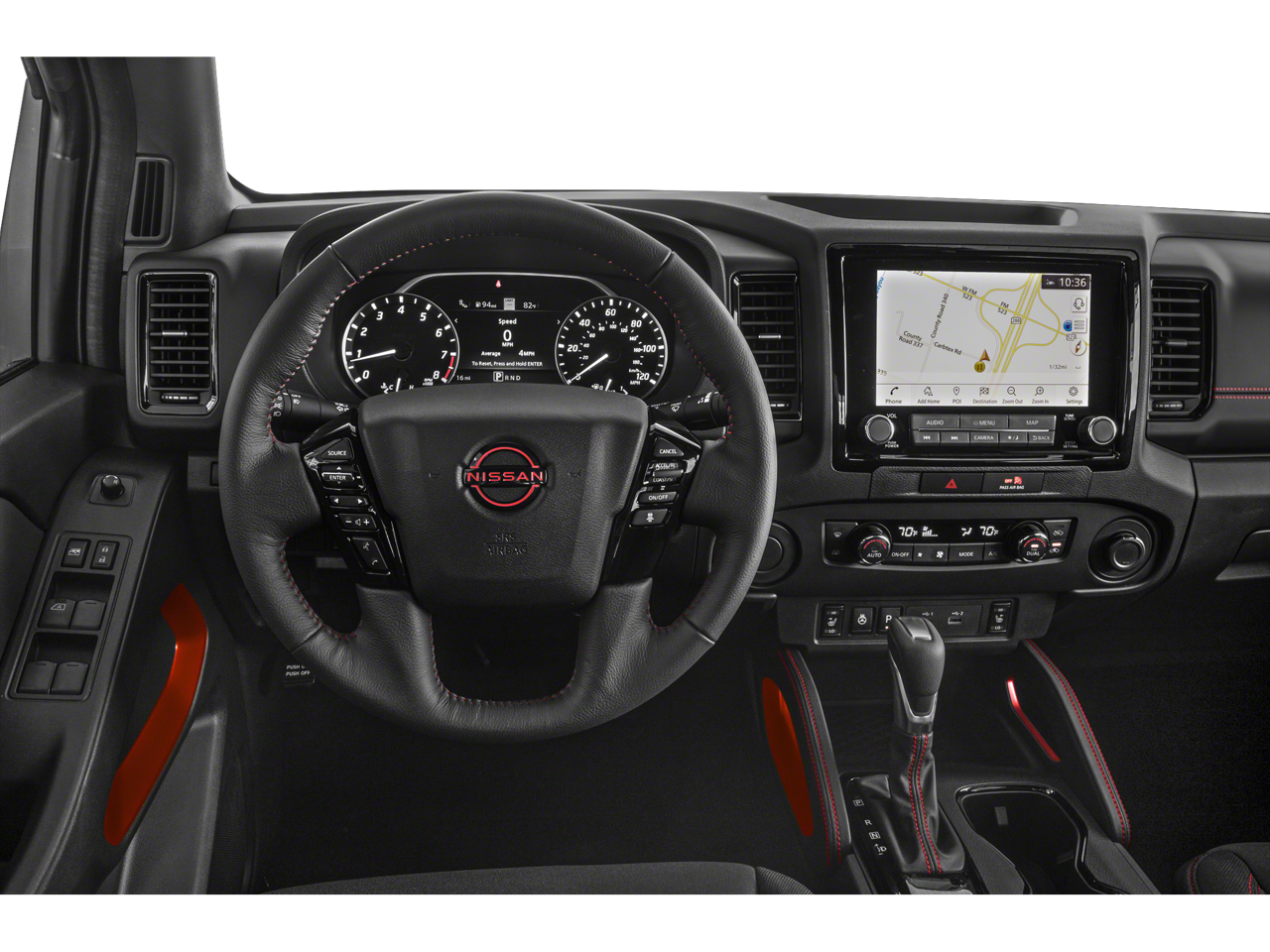 PRO CONVENIENCE PACKAGE Bed Under-Rail Lighting, Remote Engine Starter, 120V Power Outlet in Bed, Heated Front Seats, Intelligent Around View Monitor (I-AVM), Moving Object Detection (MOD) and off-road mode, Utili-Track System, 2 adjustable tie-down cleats, Spray-In Bedliner, Trailer Hitch w/Wiring Harness, VPC installed accessory, Heated Steering Wheel, Wireless Charging For Personal Devices, Heated Outside Mirrors, 120V Power Outlet in Rear Center Console, TECHNOLOGY PACKAGE Rear Sonar System, Rear Automatic Braking (RAB), High Beam Assist (HBA), Blind Spot Warning (BSW), Rear Cross Traffic Alert (RCTA), Intelligent Cruise Control (ICC), Lane Departure Warning (LDW), FENDER AUDIO PACKAGE Fender Premium Audio System w/10 Speakers, dual subwoofer, Partial Under-Seat Storage Delete. Nissan PRO-4X with Super Black exterior and Charcoal w/Lava Red Stit interior features a V6 Cylinder Engine with 310 HP at 6400 RPM*.